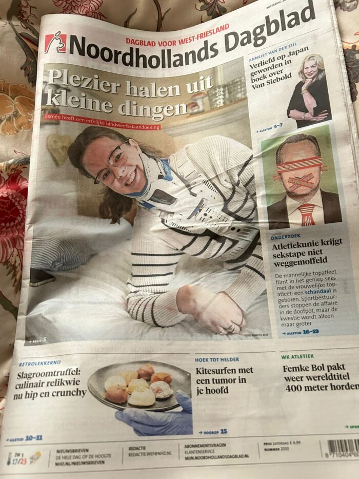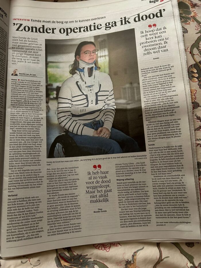 Vandaag staat er een uitgebreid artikel in het NHD over de situatie van Esmée, zie deze link voor de digitale versie (alleen voor abonnees):